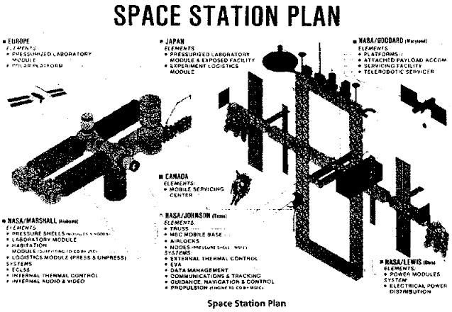 ![]() | Dual Keel Station - Dual Keel Space Station - 1986. This diagram shows the distribution of work between the four NASA centers and international partners during Phase B in April 1985-87. Credit: NASA via Marcus Lindroos. 20,941 bytes. 637 x 440 pixels. |