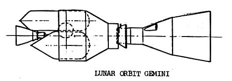 ![]() | Lunar Orbit Gemini - Lunar Orbit Gemini. In this version a Gemini docks with a Titan 3C-launched transtage, which maneuvers the Gemini into a lunar orbit and then returns it to earth. Credit: McDonnell Douglas. 11,822 bytes. 469 x 164 pixels. |
