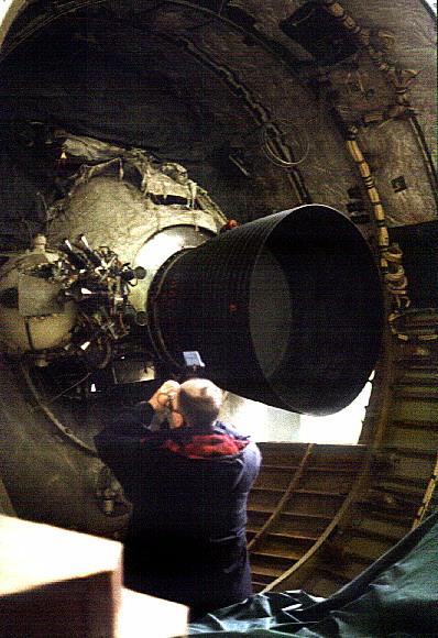 ![]() | LK Crew Station - A view of the actual fully-equipped LK crew station. Significant equipment is present that is not in the mock-ups that can be viewed today. Note the collimator/aiming reticule over the landing viewport; the cabin crowded with pilot restraints, pipes, and equipment racks. It is clear why accomodation of more than one cosmonaut in this space was not feasible. 43,605 bytes. 413 x 311 pixels. |