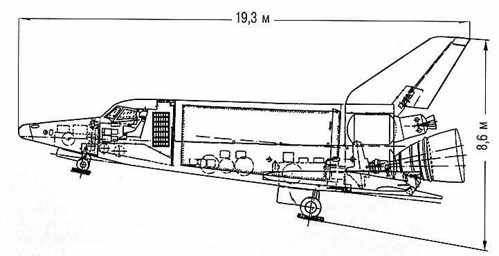 | MAKS side view - MAKS side view drawing Credit: Dr.Vadim P.Lukashevich. 42,391 bytes. 721 x 371 pixels. |