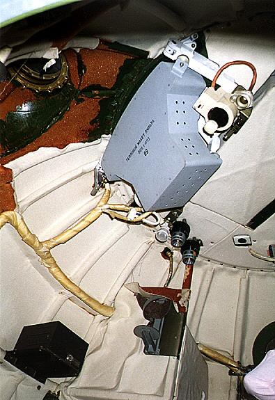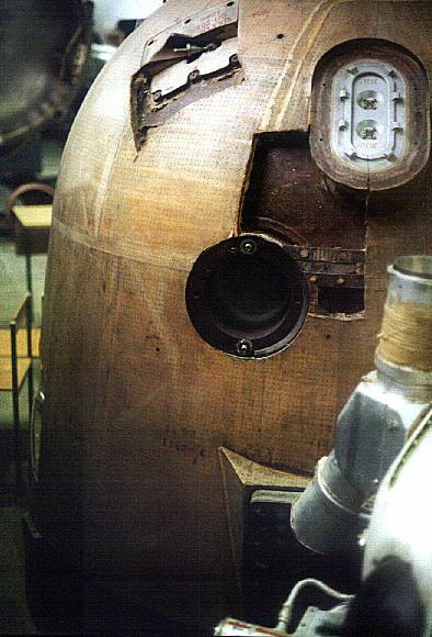 ![]() | LOK OM Interior - View of the interior of the LOK re-entry vehicle at the Korolev School. This is the only known photograph of this part of the spacecraft. A form-fitting crew couch is seen at lower left and the single visible control panel at center. Credit: Jakob Terweij. 72,270 bytes. 581 x 387 pixels. |