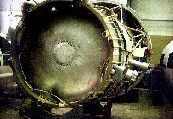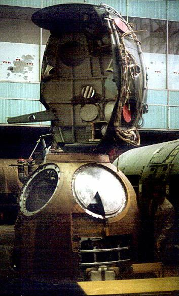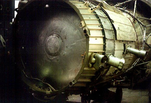 ![]() | LOK Block I forward - View of the dome covering the pressurized instrument compartment of the LOK. Credit: © Mark Wade. 57,540 bytes. 577 x 397 pixels. |