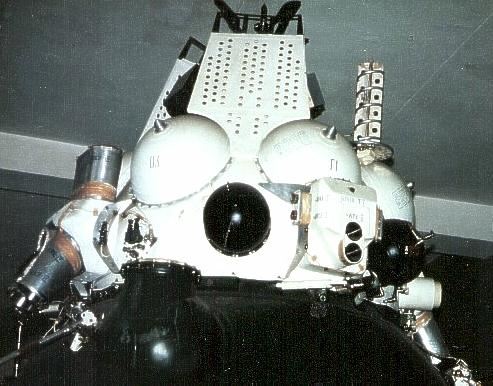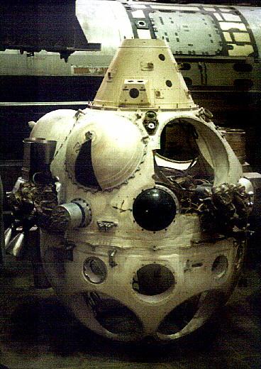 ![]() | LOK Orbital Module - LOK Orbital Module, closeup of cupola for use of cosmonaut in docking with LK. Credit: © Mark Wade. 19,383 bytes. 254 x 326 pixels. |