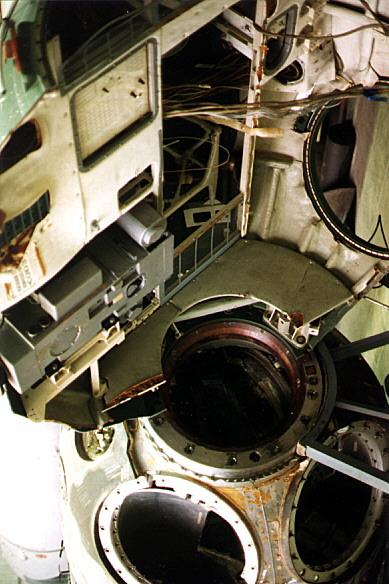 ![]() | LOK Orbital Module - LOK Orbital Module, view up from the entry hatch from the Descent Module to the ceiling. Note air conditioning equipment. Credit: © Mark Wade. 67,879 bytes. 397 x 575 pixels. |