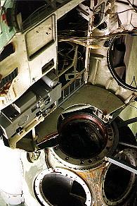 ![]() | LOK Capsule Interior - The LOK Block I propulsion unit at Korolev. The delicate white radiator panels have been bent over the years. The cylinder outershell and flared base of the LOK are missing; the smaller cylinder at top is the engine unit. Credit: Jakob Terweij. 28,709 bytes. 285 x 480 pixels. |