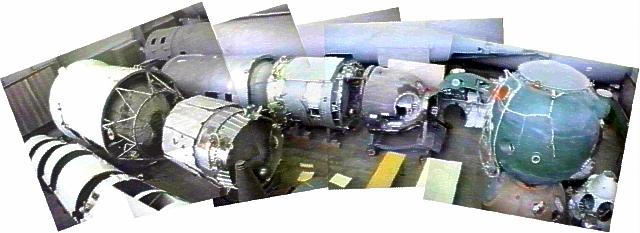 ![]() | LOK Orbital Module - LOK Orbital Module, view down from top of spacecraft toward Soyuz descent module. Credit: © Mark Wade. 49,201 bytes. 389 x 584 pixels. |