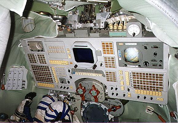 ![]() | Soyuz-T interior Credit: © Mark Wade. 70,082 bytes. 580 x 400 pixels. |