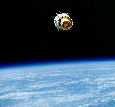 ![]() | STS-29 - STS-29 IUS with TDRS-D drifts above Earth's surface during post deployment Credit: NASA. 17,477 bytes. 477 x 442 pixels. |