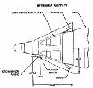 ![]() | Spacecraft: Winged Gemini. The most radical modification of the basic Gemini reentry module ever proposed. Drawing on the results of the ASSET subscale winged reentry vehicle program, McDonnell proposed a version of the spacecraft using the same internal systems but capable of a piloted runway landing. The spacecraft was designed for launch by the standard Titan 2 Gemini Launch Vehicle. Unlike the ballistic Gemini, winged Gemini was not designed to maneuver in orbit (launch on a Titan 3A or 3C with a transtage would be required for that capability). Separation from the launch vehicle was made by 2 x 260 kgf solid motors; attitude control in orbit was provided by 8 x 45 kgf bipropellant thrusters at the base of the vehicle; retrofire was initiated by 5 x 1165 kgf solid rocket motors. |
