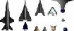 | Project 7969 Designs Project 7969 designs. From left, top row: North American X-15B; Bell Dynasoar; Northrop Dynasoar; Republic Demi body; Avco maneuverable drag cone. Second row: Lockheed; Martin; Aeronutronics; Goodyear; McDonnell; Convair Credit: © Mark Wade. 18,922 bytes. 640 x 273 pixels. |
