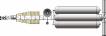 | Soviet Mars Craft Soviet designs for Mars expeditions to a common scale. Left to right, top to bottom: MPK, TMK-1, Mavr; TMK-E early concept, TMK-E final design; two alternate MEK designs; MK-700; Mars 1986; Kurchatov Mars 1989 design; RKK Energia solar-powered Mars 1989 design; NII-TP/Keldysh Mars 1994 design. The orange line is 100 m long. Credit: © Mark Wade. 22,710 bytes. 600 x 364 pixels. |