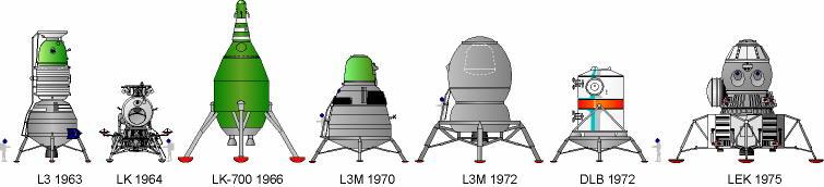 ![]() | Spacecraft: LEK. LEK = Lunniy ekspeditionniy korabl', lunar expedition spacecraft. As in the original LK lunar lander, this would be taken to near zero velocity near the lunar surface by the Vulkan Block V 'lunar crasher' rocket stage. It would then descend to the lunar surface using a landing stage nearly identical to the American lunar module descent stage. This landing stage however would primarily provide propulsion of the upper Ascent/earth recovery stage to a trans-earth trajectory. The Ascent/earth recovery stage consisted of a re-entry capsule in the shape of but larger than the Soyuz descent module, encapsulated in a larger pressurised volume providing crew quarters and equipment storage. |