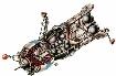 ![]() | Spacecraft: Lunokhod LEK. Lunar rover for the Lunar Expedition. The rover provided pressurized quarters for 2 crew, allowing trips up to 200 km from the lunar base at a top speed of 5 km/hr. The 2.25 tonne generating station provided 8 kw of solar power to run the motor. Each 12 day trip would use 200 kg of life support consumables. |