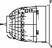 These studies were the most complex ever undertaken, and Korolev obtained assistance from the most brilliant Soviet aerodynamicists, notably Likhushin at NII-1, and those refugees from Chelomei�s take-over of their bureaux, Myasishchyev at TsAGI, and Tsybin at NII-88. In 1962 the classic Soyuz 'headlight' configuration was selected: a hemispherical forebody transition in a barely conical (7 degree) section to the section-of-a-sphere heat shield.