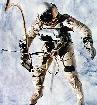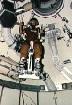 ![]() | Spacecraft: Orlan. The Orlan spacesuit was used for Russian EVA's on Salyut, Mir, and the International Space Station. It was designed by the Zvezda OKB, and derived from the Kretchet suit intended for use on the lunar surface. It consisted of flexible limbs attached to a one-piece rigid body / helmet unit. The suit was entered through a hatch in the rear of the torso. The exterior of the hatch housed the life support equipment. Maximum operation time was three hours when the Orlan-D version of the suit was first used on Salyut 6. Later Orlan-DM versions of the suit increased this period to nine hours. The integrated design meant that no external hoses were required as in the American space suits. The suit standard pressure was 0.40 atmospheres, so that a prebreathe period of only 30 minutes was required. Electrical power and communications were via an umbilical cord to the station. Control of the suit was via a panel on the chest, with the markings in mirror image. The cosmonaut viewed the panel using a mirror on the wrist of the suit. |