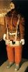 ![]() | Spacecraft: Wiley Post Suit. B. F. Goodrich made a full pressure suit for pioneering aviator Wiley Post. It was of double ply rubberized parachute fabric, with pigskin gloves, rubber boots, and aluminium helmet, pressurized to 0.5 bar. The pressure suit used a liquid oxygen source and had arm and leg joints that permitted easy operation of the flight controls and also enabled walking to and from the aircraft. In his Lockheed Vega, the "Winnie May", Post set unofficial altitude records (as high as 15 km), discovering the jet stream in the process. In March 1935, Post flew from Burbank California to Cleveland Ohio in the stratosphere using the jet stream. At times, his ground speed exceeded 550 kph in a 290 kph aircraft. Post's pioneering accomplishments were the first major practical advance in pressurised flight. Ten flights were made in the suit before Post's death in 1935. |