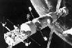 ![]() | Spacecraft: Extended Mission Gemini. A McDonnell concept for using Gemini for extended duration missions. The basic Gemini would dock with an Agena upper stage. Between the docking collar and the Agena is an orbital shelter where the crew would live and work for weeks at a time. The crew would transfer from the Gemini to the miniature space station via an inflatable airlock. |