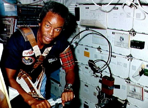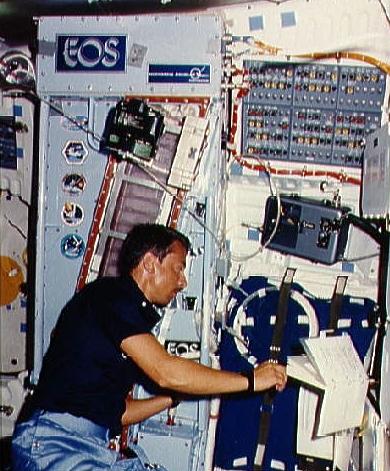 STS-41-D Payload specialist Charles Walker works with CFES experiment Credit: NASA. File Name: 10061555.jpg. Image width: 390 pixels. Image height: 471 pixels. Image size: 50,615 bytes. |