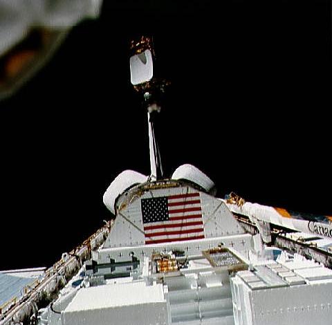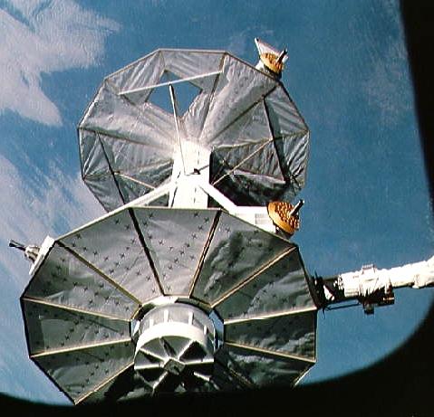 STS-8 Close up view of the PFTA being lifted out of the payload bay Credit: NASA. File Name: 10061323.jpg. Image width: 479 pixels. Image height: 461 pixels. Image size: 41,710 bytes. |