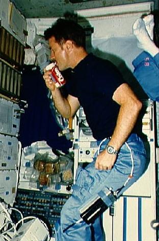 STS-51-F Astronaut Anthony W. England with soft drink in middeck area near galley Credit: NASA. File Name: 10062697.jpg. Image width: 312 pixels. Image height: 471 pixels. Image size: 37,029 bytes. |