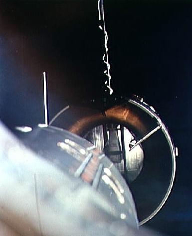 Gemini 9 Augmented Target Docking Adapter as seen from the Gemini 9 spacecraft Credit: NASA. File Name: 10074371.jpg. Image width: 613 pixels. Image height: 470 pixels. Image size: 40,956 bytes. |
