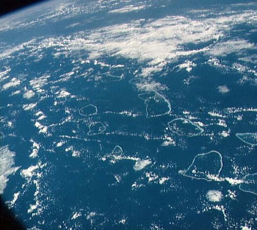 Apollo 7 Tuamotu Archipelago in South Pacific as seen from the Apollo 7 spacecraft Credit: NASA. File Name: 10074888.jpg. Image width: 527 pixels. Image height: 472 pixels. Image size: 55,969 bytes. |