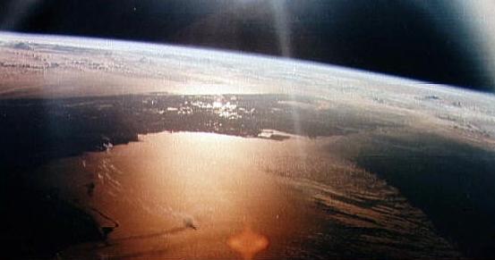 Apollo 7 Morning sun on Gulf of Mexico as seen from the Apollo 7 spacecraft Credit: NASA. File Name: 10074899.jpg. Image width: 553 pixels. Image height: 291 pixels. Image size: 19,620 bytes. |