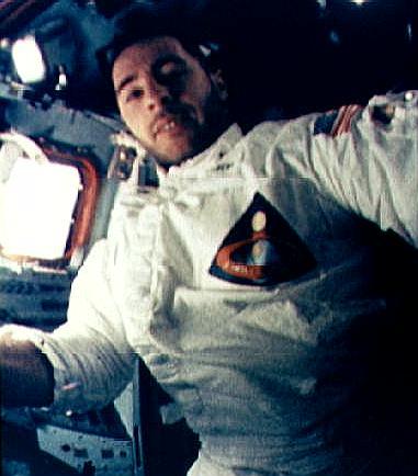 Apollo 9 Astronaut James McDivitt photographed inside Command Module during EVA Credit: NASA. File Name: 10075056.jpg. Image width: 496 pixels. Image height: 472 pixels. Image size: 36,088 bytes. |