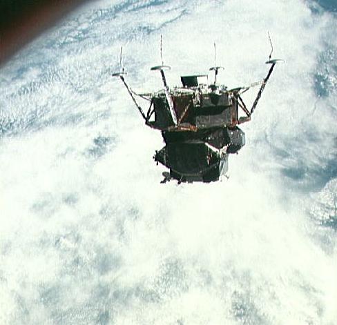 Apollo 9 Lunar Module ascent stage photographed from Command/Service Module Credit: NASA. File Name: 10075055.jpg. Image width: 470 pixels. Image height: 322 pixels. Image size: 27,584 bytes. |