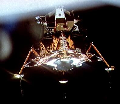 Apollo 11 View Lunar module from the Command module before its descent to lunar surface Credit: NASA. File Name: 10075256.jpg. Image width: 395 pixels. Image height: 344 pixels. Image size: 18,071 bytes. |