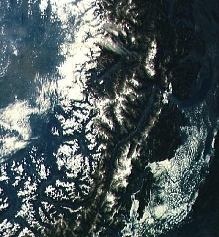 Skylab 3 Snow covered Alps of France, Italy, and Switzerland Credit: NASA. File Name: 10076260.jpg. Image width: 441 pixels. Image height: 476 pixels. Image size: 60,981 bytes. |