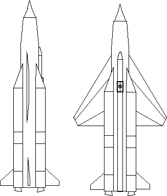 Buran Missile 2 view Credit: © Mark Wade. File Name: buranm2v.gif. Image width: 326 pixels. Image height: 384 pixels. Image size: 4,428 bytes. |