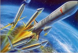 Buran missile M-42 and M-44 Buran trisonic ramjet missiles were considered in both manned and unmanned versions. Credit: Khrunichev. File Name: buranmis.jpg. Image width: 351 pixels. Image height: 190 pixels. Image size: 14,138 bytes. |