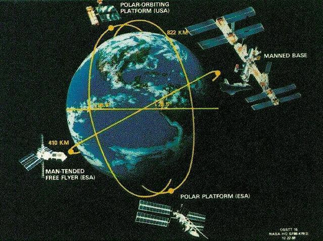 Freedom Space Station Freedom Baseline. The American co-orbiting space platform was deleted in 1987 but the polar platform was retained. Credit: NASA via Marcus Lindroos. File Name: fig2a2.jpg. Image width: 639 pixels. Image height: 477 pixels. Image size: 108,148 bytes. |