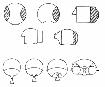 LK Evolution Steps in evolution of the LK lunar lander. Top row, from right to left: development of the Lunar Cabin progressed from a simple sphere housing a seated cosmonaut with separate twin equipment sections, to a single equpment section, then finally to the complex shape with separate equipment module required to provide good visibility for landing and docking. Middle row: Development of the Block E landing/ascent rocket stage was dictated by the requirements of minimum weight, symmetric depletion of the propellant tanks, and an aerodynamic shape to deflect exhaust at landing away from the engine bell. Bottom row: alternate LPU landing gear approaches considered. From left: toroidal landing ring, housing LPU equipment; wild landing bag/water stabilised approach; variants on conventional gear. File Name: lkevol2.jpg. Image width: 798 pixels. Image height: 395 pixels. Image size: 37,434 bytes. |