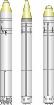 The guidance system was designed to work with any of these configurations and the vehicle could be converted from one configuration to another within 24 hours. However for use as an ABM the launch complex need some additional equipment. The rocket was normally painted white, and the light warhead version had a strict conic shape. The heavy warhead was longer, but with the same base diameter. First units of the type had radio-inertial guidance with a radio-command correction system. Later, when the military had confidence that the pure inertial guidance was precise enough, the radio was removed. Orevo has a complete sectioned missile. Total mass, sea level thrust accurate; Isp, empty mass and burn time estimated. |