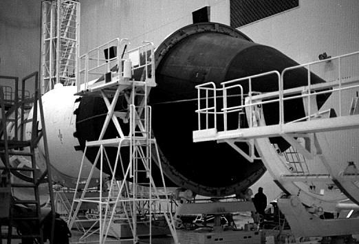 | Proton Iridium - Proton Iridium payload preparation in former Buran payload facility. Credit: © Mark Wade. 38,943 bytes. 522 x 355 pixels. |