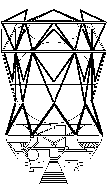 ![]() | Proton 8K82K/11S824 - Proton 8K82K / 11S824 Block D launch vehicle - cutaway drawing showing arrangement of N2O4 oxidiser tanks (green) and UDMH fuel tanks (orange) in Proton, and Liquid oxygen (blue) and kerosene (pink) tanks in the Block D stage. The Soyuz 7K-L1 spacecraft was mounted directly above the Block D liquid oxygen tank. For the Soyuz circumlunar flights a launch escape tower was fitted that pulled the capsule away in an emergency. Credit: © Mark Wade. 7,453 bytes. 60 x 469 pixels. |