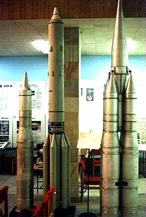 ![]() | UR-200 and UR-500 - Dynamic test models of UR-200 ICBM and early Proton concept 'collection of UR-200's' Credit: © Mark Wade. 27,338 bytes. 291 x 434 pixels. |
