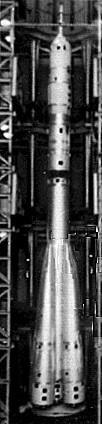 Standardized launch vehicle designed to replace a proliferation of earlier models (8K72, 8A91, 8K74, 8K78, 11A57). Designed initially to support launch of the Soyuz complex (7K manned, 9K rocket stage, and 11k tanker) and Zenit-4 reconnaisance satellite. Later 'U' model extended to cover a range of follow-on satellites. Compared to 11A57, the telemetry system was reduced in mass to no more than 150 kg, and engines were cherry-picked for the vehicle core to ensure that specific impulse was no less than 252 seconds at sea level, 315 in vacuum.