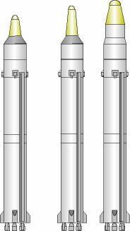 ![]() | UR-100 ICBM - UR-100 ICBM Versions Credit: © Mark Wade. 7,994 bytes. 184 x 327 pixels. |
