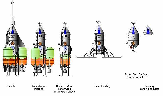 | Apollo vs N1-L3 Apollo CSM / LM vs L3 Lunar Complex Credit: © Mark Wade. 11,521 bytes. 621 x 332 pixels. |