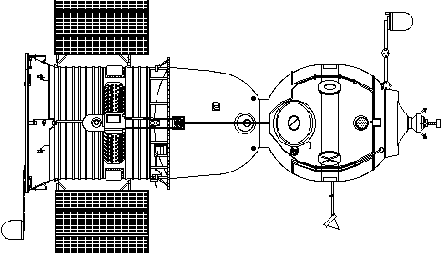 ![]() | Progress - Drawing of the initial version of the Progress refuelling spacecraft. Credit: © Mark Wade. 2,814 bytes. 289 x 172 pixels. |